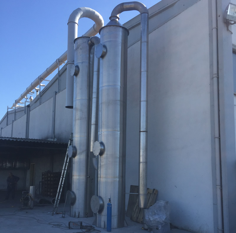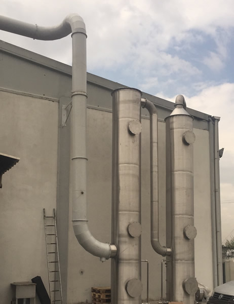 Endüstriyel veya Evsel Atık suların toplanması ile işlenmesi esnasında, Bitkisel veya Hayvansal Üretim Tesislerindeki Proseslerde, Asidik veya Bazik Sıvıların işlenmesi esnasında ve ayrıca Endüstriyel Tesislerdeki muhtelif işletmelerde, çevre ve insan sağlığına zarar veren ve çalışmayı engelleyen muhtelif tür kokulu gaz ve Kimyasal gaz ihtiva eden buharlar ortaya çıkmaktadır. Bu Gazlar Organik veya İnorganik olarak kokulu olarak ortama atılırlar. VOC (İnorganik Uçucu Gazlar) gazlarının tutulmasında önemli bir yere sahiptirler. Belirli veya Belirsiz muhtelif koku ve gazlar ortamdan emilerek Scrubber Koku/Gaz Giderim Ünitesine gönderilir ve burada kimyasal Sıvı Dozajlanarak Kokulu Gaz ile Reaksiyona sokularak gazın tutulması sağlanır ve Kokulu gaz havadan Arıtılarak Atmosfere temiz hava çıkışı sağlanır.